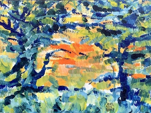 2020Expressionistisch, levendige kleuren. Acrylverf op linnen.