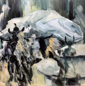 2022Schildering met acrylverf op niet opgespannen schilderslinnen.