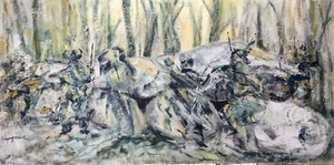 2024Tekening in houtskool gecombineerd met aquarelverf.