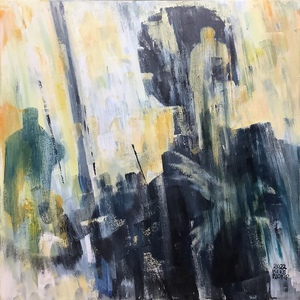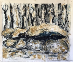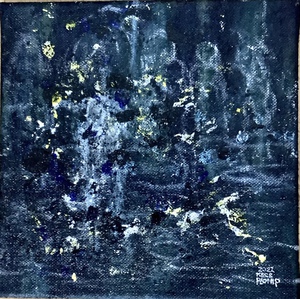 Schildering met acrylverf op niet opgespannen schilderslinnen.