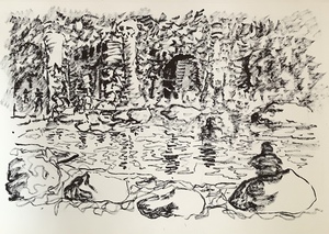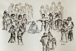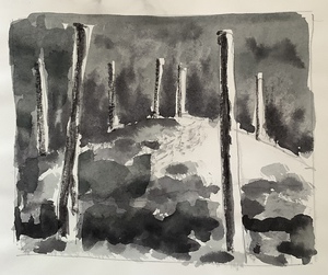 2021Penseeltekening. Gewassen inkt en hoetskool.